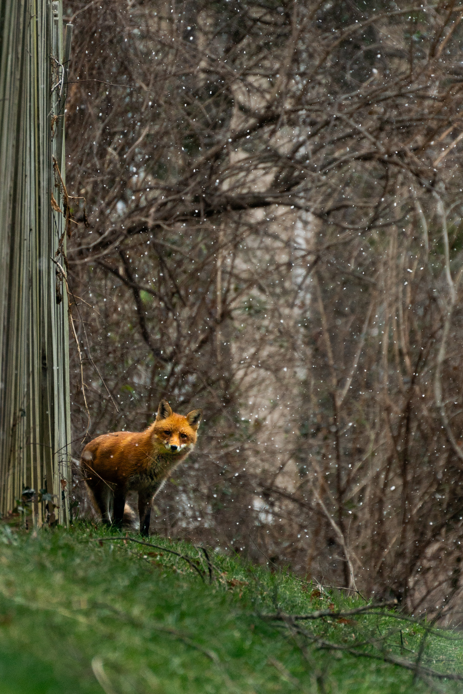 Photo of a neighborhood fox looking at the camera. The title "Hello?" came from the action of the fox, seemingly saying "hello" to the person behind the screen. Taken with Sony a9 & Tamron 70-300mm 2024 Regional Scholastic Art Award - Honorable Mention